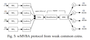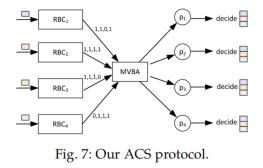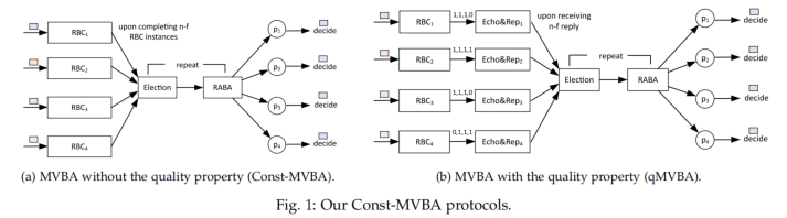 传统的异步公共子集共识协议(ACS),如经典的BKR框架,普遍采用n个并行异步二元一致性(ABA)实例,导致运行时间为O(log n),在大规模副本节点下性能瓶颈显著,尤其在ABA阶段占用高达95%以上的运行时间。围绕异步分布式系统中这个长期悬而未决的核心问题,研究团队首次实现了无签名、信息论安全且具备常数时间复杂度的MVBA协议,突破了传统MVBA在该设定下通常需要O(log n)时间的瓶颈。提出的Const-MVBA协议是一种无签名、信息论安全的常数轮MVBA协议,通过将MVBA问题归约为可靠广播(RBC)、随机选举(基于公共硬币)和可重提的异步二元协商(RABA)等理想原语,构建了一个简洁而高效的协议框架。相关研究成果以“Practical Signature-Free Multivalued Validated Byzantine Agreement and Asynchronous Common Subset in Constant Time”为题发表于IEEE TC,山东大学助理研究员王馨为论文第一作者,通讯作者为清华大学教授段斯斯与浙江清华长三角研究院教授张海滨。